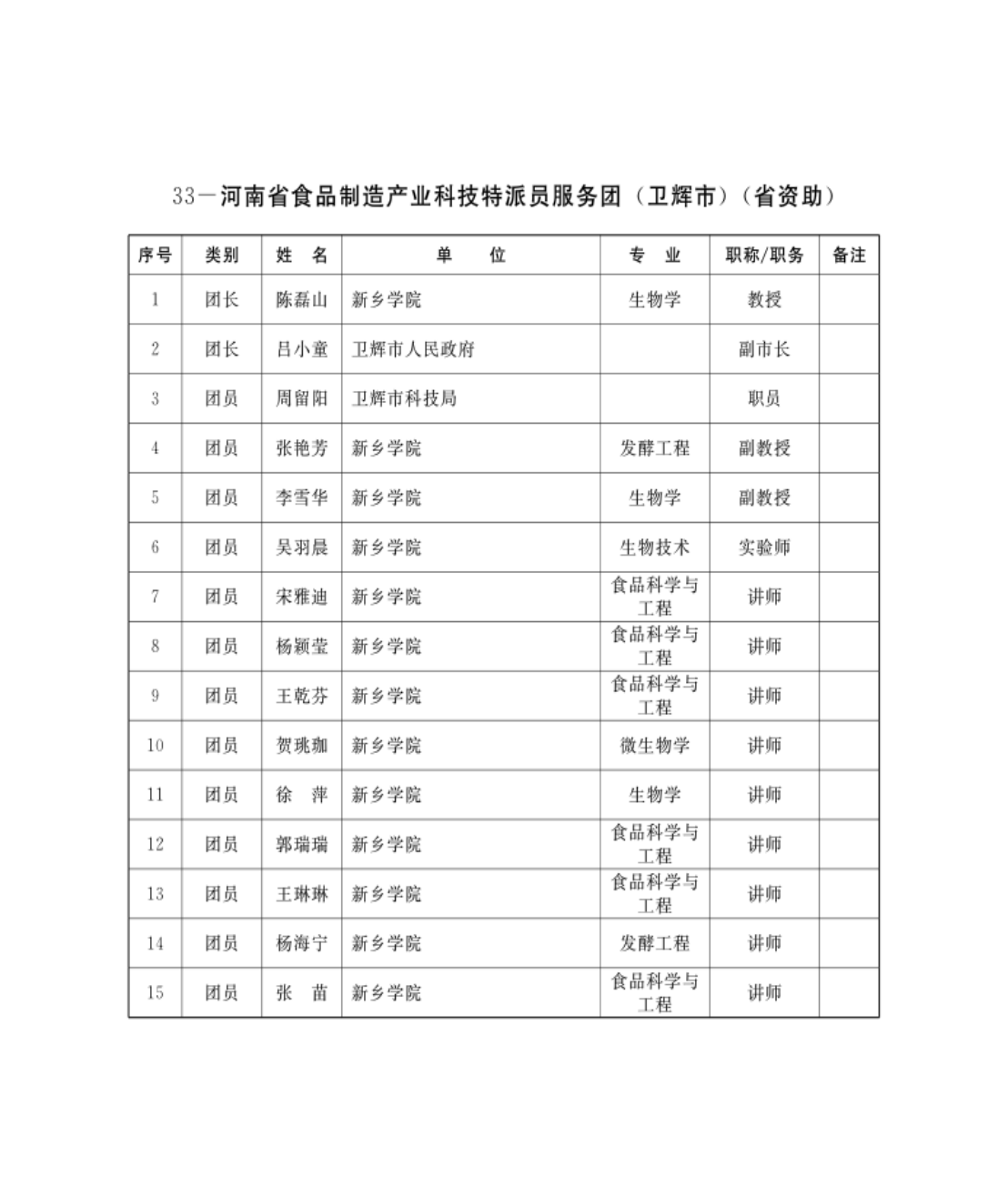 近日,河南省2025年度科技特派员名单正式公布,由我校生物工程学院科研团队组成的“河南省食品制造产业科技特派员服务团”成功获批,对口服务卫辉市 久久影视资源,省资助的科技特派员服务团为我校首次。