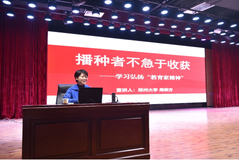 为大力弘扬教育家精神,扎实推进师德师风建设工作,10月14日下午,我校在图书馆一楼文化艺术中心举行了师德师风培训会,党的二十大代表,全国最美教师,教育部“教育家精神”全国巡讲团成员,郑州大学马克思主义学院周荣方教授应邀作主题报告,报告题目是《播种者不急于收获——学习弘扬“教育家精神”》,此次活动由副校长杨钧主持 久久影视资源,各学院师生代表及相关职能部门人员共计400余人参加了培训。