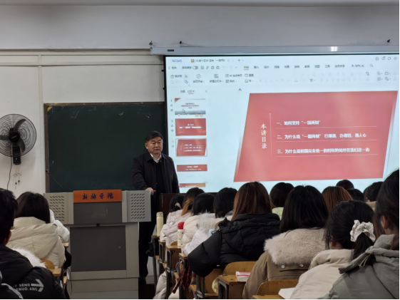 12月12日下午,党委书记王孝俊走进A14-524教室,为2024级英语本科1班,汉语言文学本科1班的同学讲授思政课,授课内容为《习近平新时代中国特色社会主义思想概论》课程第十五章《坚持“一国两制”和推进祖国统一》 久久影视资源,围绕“如何全面准确理解和贯彻‘一国两制’方针”“为什么说‘一国两制’是保持港澳长期繁荣稳定的最佳制度”“为什么说祖国完全统一的时和势始终在我们这一边”三个核心问题展开教学。