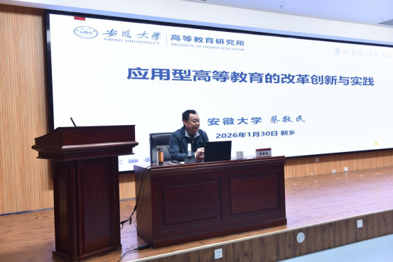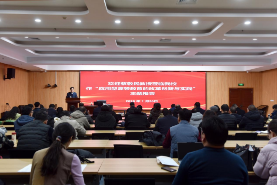 1月30日上午,安徽省人大常委会委员,省人大农业与农村委员会副主任委员 久久影视资源,安徽大学原党委书记蔡敬民教授应邀来我校作题为《应用型高等教育的改革创新与实践》的专题报告,校长李广慧主持报告会,校领导班子成员,各学院院长和副院长,相关职能部门班子成员近百人聆听了报告。