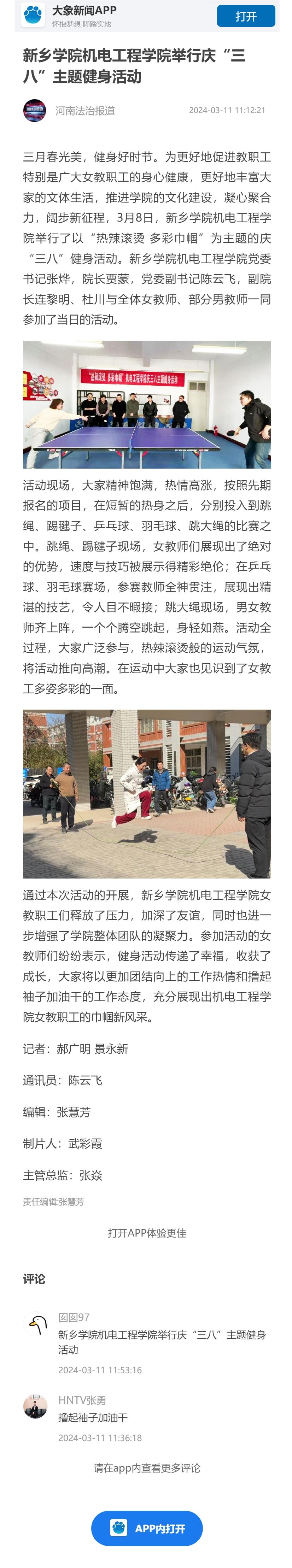 上一条:河南日报客户端报道我校首次举办数学文化节 下一条:中国网报道我校机电工程学院举行“热辣滚烫 多彩巾帼”庆“三八”主题健身活动