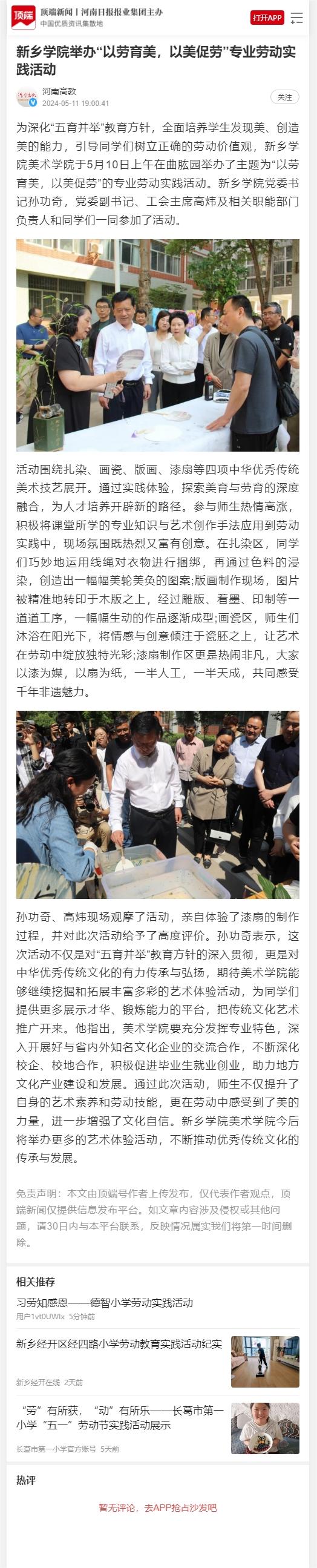 上一条:河南日报客户端报道我校举办“以劳育美,以美促劳”劳动主题实践活动 下一条:大象新闻客户端报道我校举办“以劳育美 久久高清视频,以美促劳”专业劳动实践活动 .