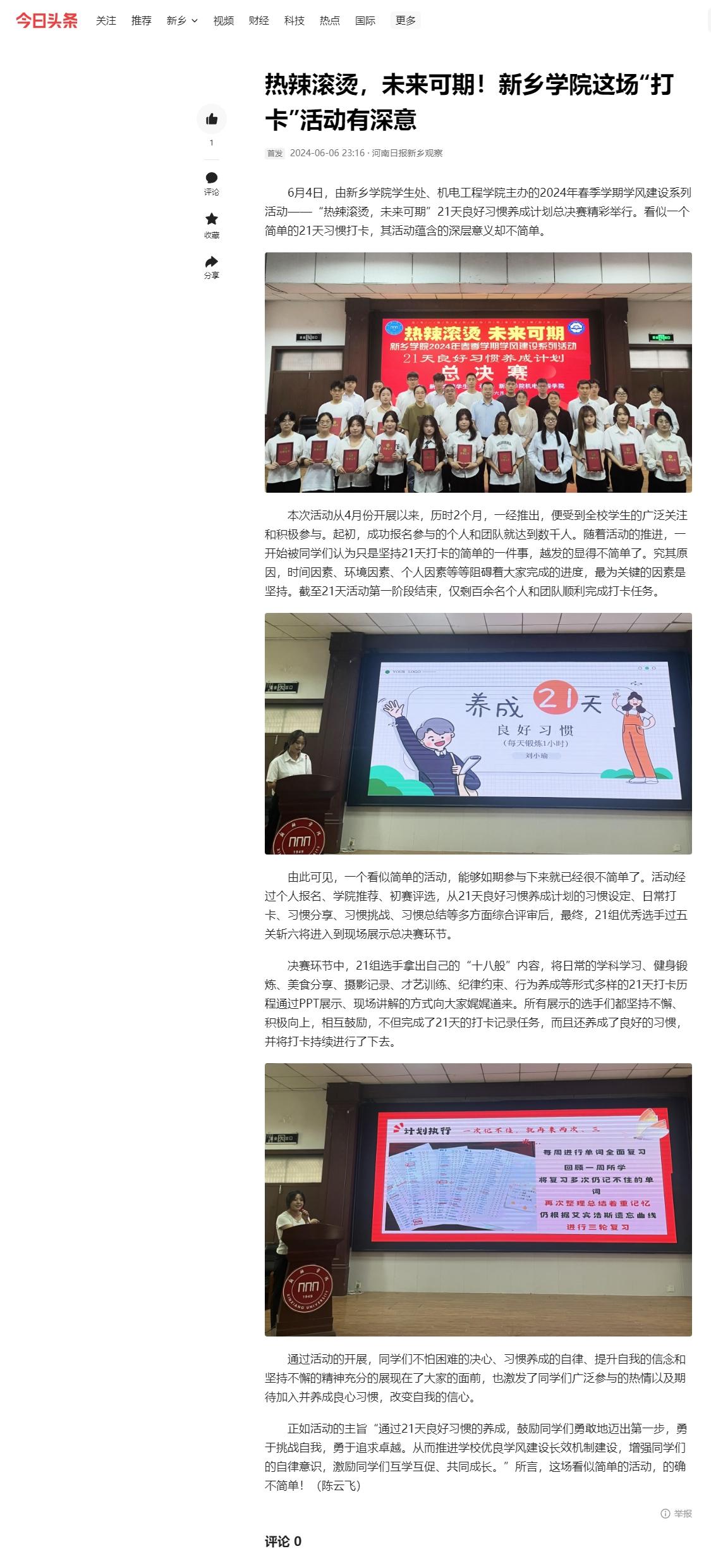 上一条:河南乡村振兴网报道我校举行“热辣滚烫,未来可期”21天良好习惯养成计划总决赛 下一条:光明日报客户端报道第三届牧野文化学术研讨会在我校举行 久久高清视频.
