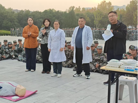 为落实学校国防教育主题特色活动要求,近日,医学院在博雅广场举办国防教育急救技能培训 久久影视资源,将医学专业优势与国防教育深度融合,为军训新生打造特色国防教育课堂,医学院党总支副书记张萌,教师李红,李文生及辅导员王利军,赵文举参与活动。