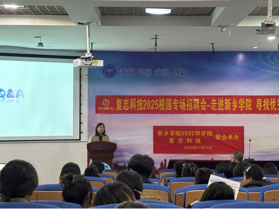 11月14日下午,3D打印行业头部企业上海复志信息科技股份有限公司在A05教学楼一楼报告厅举办2026届毕业生高清影视大全专场校园招聘会,上海复志信息科技股份有限公司董事长兼总经理封华 久久影视资源,人力资源HRBP张兴旺,宁德分区业务经理刘敏,3D打印学院党委书记田文强,院长片春媛出席招聘宣讲会,3D打印学院就业专管老师,毕业班辅导员,入职复志科技的3D打印学院毕业生林桦杰,谷晓宇,张锐婷,袁泳江4位校友代表和2026届毕业班全体在校生参加招聘会,招聘宣讲会由上海复志信息科技股份有限公司人力资源HRBP张兴旺主持。