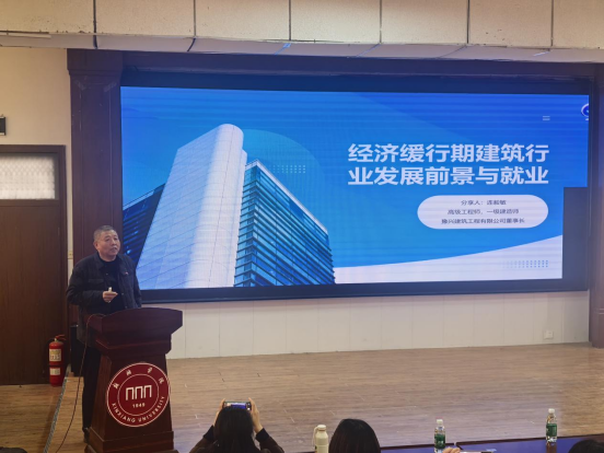 豫兴建筑工程有限公司总经理连毅敏结合自身多年行业经验,作了题为《经济缓行期建筑行业发展前景与就业》的分享,他回顾了建筑业发展历程,分析了当前行业面临的挑战与机遇,并指出建筑业正朝着个性化,定制化,绿色化的方向深度转型,为具备技术创新与服务意识的人才提供了广阔舞台 久久毛,河南省建设教育协会“双碳”和ESG发展中心主任刘磊则从国际化视野出发,详细解读了“中德职通车”等海外发展路径。