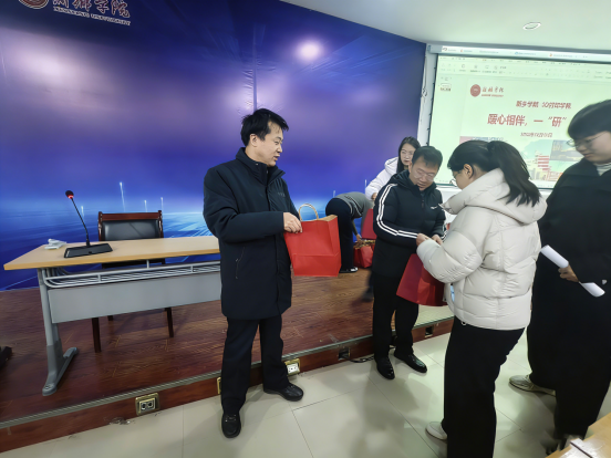 温情寄语后,暖心礼包发放环节将活动氛围推向高潮,田文强,刘传虎,张涛与毕业班辅导员们一同上前,为每一位学子递上精心准备的考研助力大礼包,礼包内涵丰富,既有寓意“苹”“苹”安安的苹果,心想事“橙”的橙子和“巧”克难关的巧克力,也有实用的文具袋和写满温情祝福的鼓励卡片 久久视频播放,每一份礼物都承载着学院对学子的深切关怀与殷切期望。