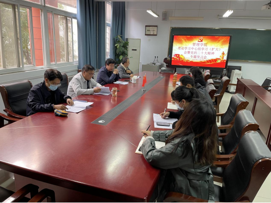 11月2日下午 久久高清视频,管理学院党委召开理论学习中心组(扩大)学习会,学习宣传贯彻党的二十大精神,会议由学院党委书记王红昌主持,院领导班子成员,党委委员和各党支部书记参加学习。