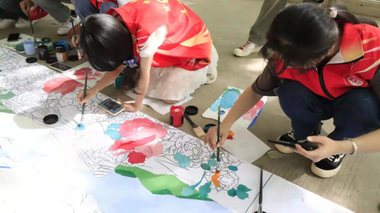 为深入学习习近平新时代中国特色社会主义思想,扎实推进主题教育在师生中走深走实 久久高清视频,4月19日下午,美术学院开展“学习二十大,永远跟党走,奋进新征程”长卷绘制活动,学院领导班子,教师,学生党员代表参加了活动。