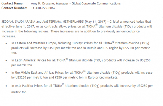 DuPont Titanium Technologies announces a price increase for all DuPont™ Ti-Pure® titanium dioxide grades sold in the Europe, Middle East and Africa region.